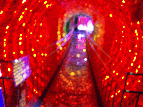 カメラもピンボケしてしまうほどピカピカとサイケデリックに大騒ぎ。
