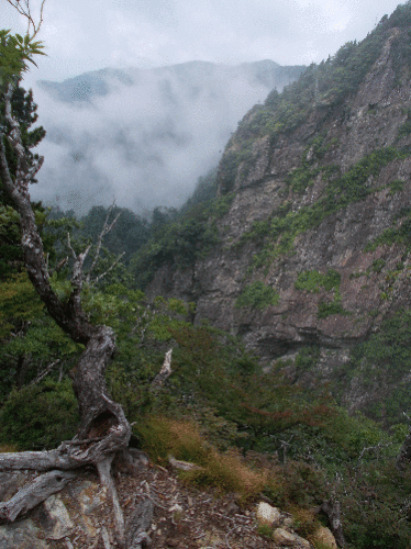 笑う膝をしかりつけながら、深山の幽玄たる景色を堪能する私。