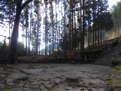 正面に見える山に本殿があります。