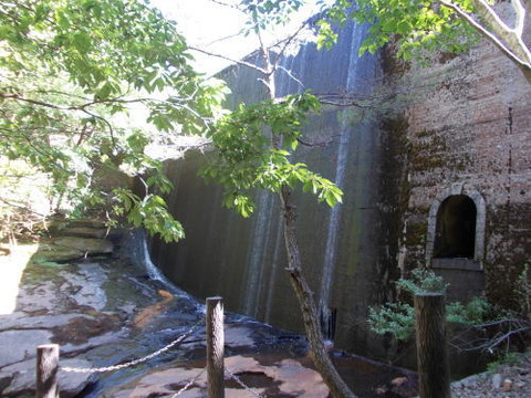 巨大な岩盤の上を水が滑り落ちてるようにも見えるのが特徴的ですね。