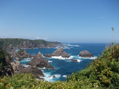 海岸から奇石群が一列に並ぶ場所として有名。