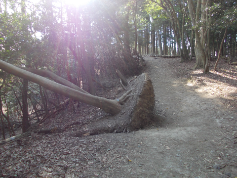 勾配はそれほど急じゃないし、道幅も広いのでサクサク歩けますが、なんか倒木が多くて荒れちょる。