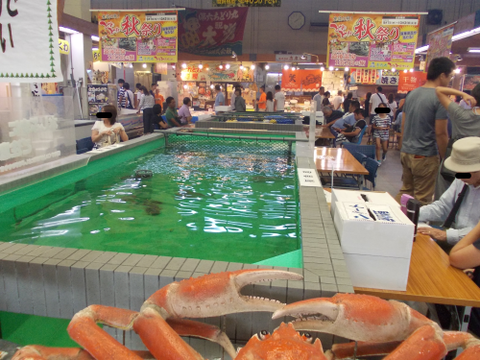 巨大なカニも通路から水槽の中をじっくり狙ってるという、とれとれぶり。