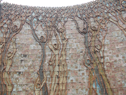 虹の泉製園に協力、寄付された方のお名前がシンボル化されて1枚1枚壁に貼りつけられてます。