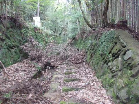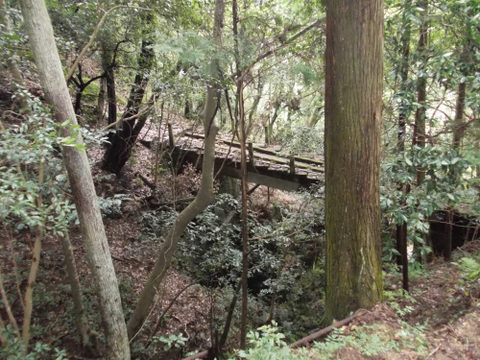 参拝路(登山路)と並行するようにケーブルカーの路線跡が。