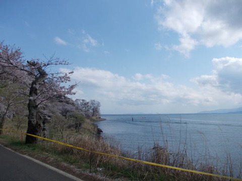 琵琶湖がクソ広いもんだから海辺に桜が延々咲いてるような錯覚を起こすんですよね。