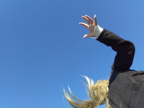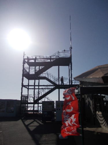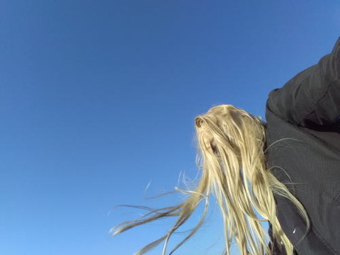 上着を飛ばされそう。