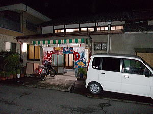 あまり自信はないのですが、お店の横の未舗装のスペースがひょっとしたら御所の湯の駐車場かもしれません。