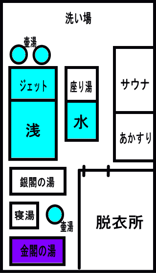 ただ、こちらの金閣、銀閣の湯、湯船が意外と小さい。