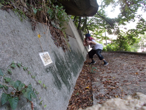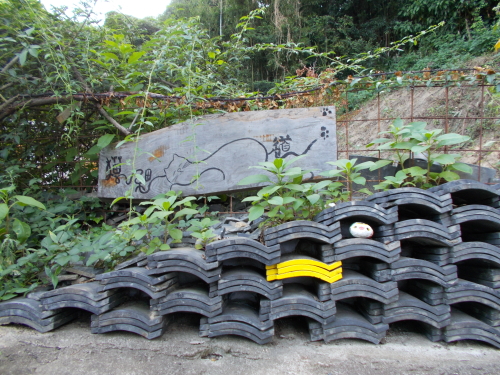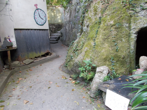 なんで瓦が積んであるのかよくわからないが、隙間にこそっと福石猫。