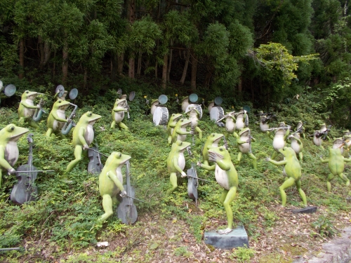 同敷地内にある大観音寺へ向かおうと外へ出たら、なぜかカエルのオーケストラが。