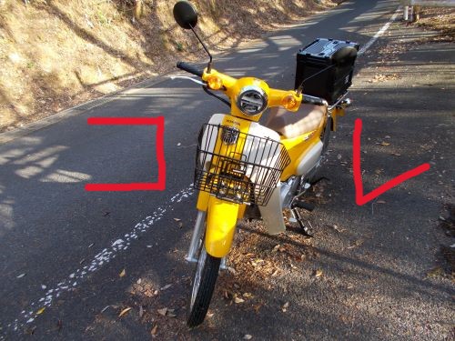大型バイク軍団に抜き去られていくスーパーカブ50と私。