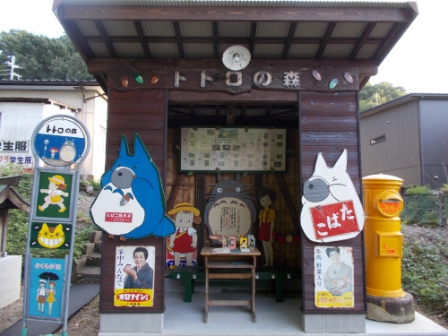 作中のバス停を模してるんでしょうけどね、取り合わせのごった煮感がなにかの祭壇のようにも見えて。
