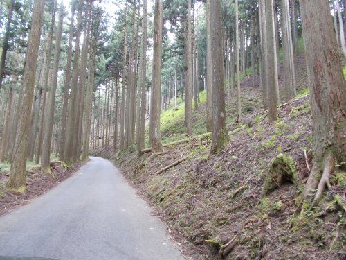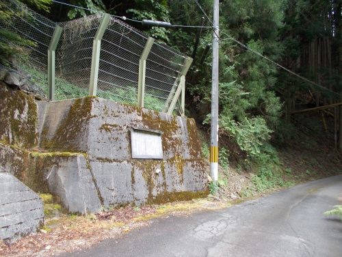 よく見ればなにか看板かかってるけど、すれ違うのもギリギリな隘路で(というかほぼ林道なんで、道路が車1台分の幅しかない区間がほとんど)看板に気をとめる余裕なんざない、っちゅーのよ。