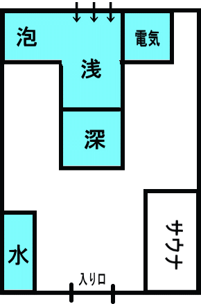 浅風呂仕様の細長い水風呂もなかなか良し。