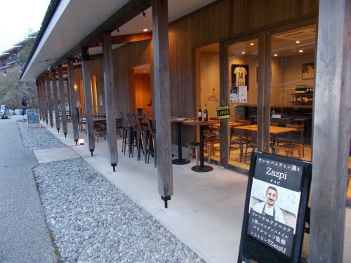 道路を隔てた反対側にはおしゃれな飲食店が。