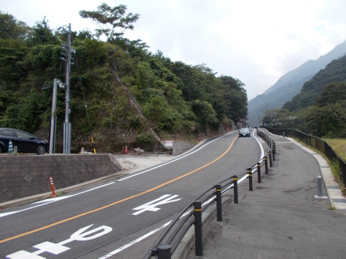 約10分ほどの山歩きののち、やっと舗装路にでる。