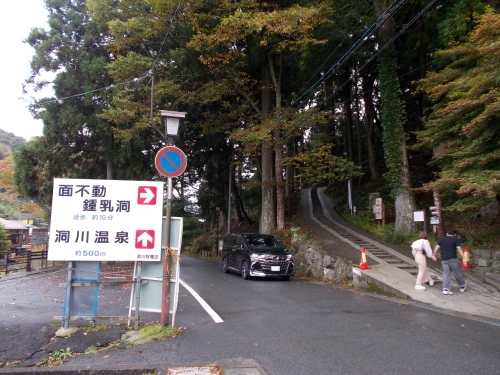 さらに進むとみたらい渓谷遊歩道入口の看板が。