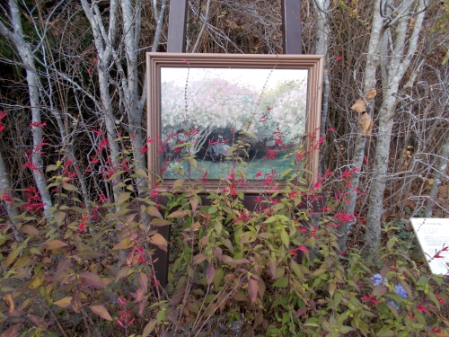 草花の絵が草花に囲まれて展示されているというダブルミーニング。