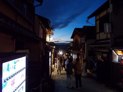 すっかり暮れて、開門時間に間に合わなかった法観寺、八坂の塔。