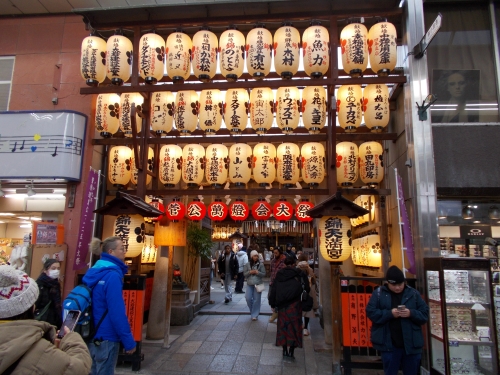 錦市場はもともと錦天満宮の門前町だったんで、錦市場で働く人はかならずここにお参りしたもんだけど、今日見た感じだとそれを知ってる関係者の方が少なさそう。