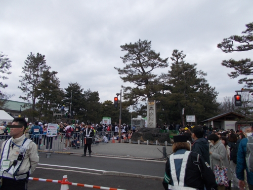 何事だ、とあたりを見回したら京都マラソン2026の垂れ幕が。
